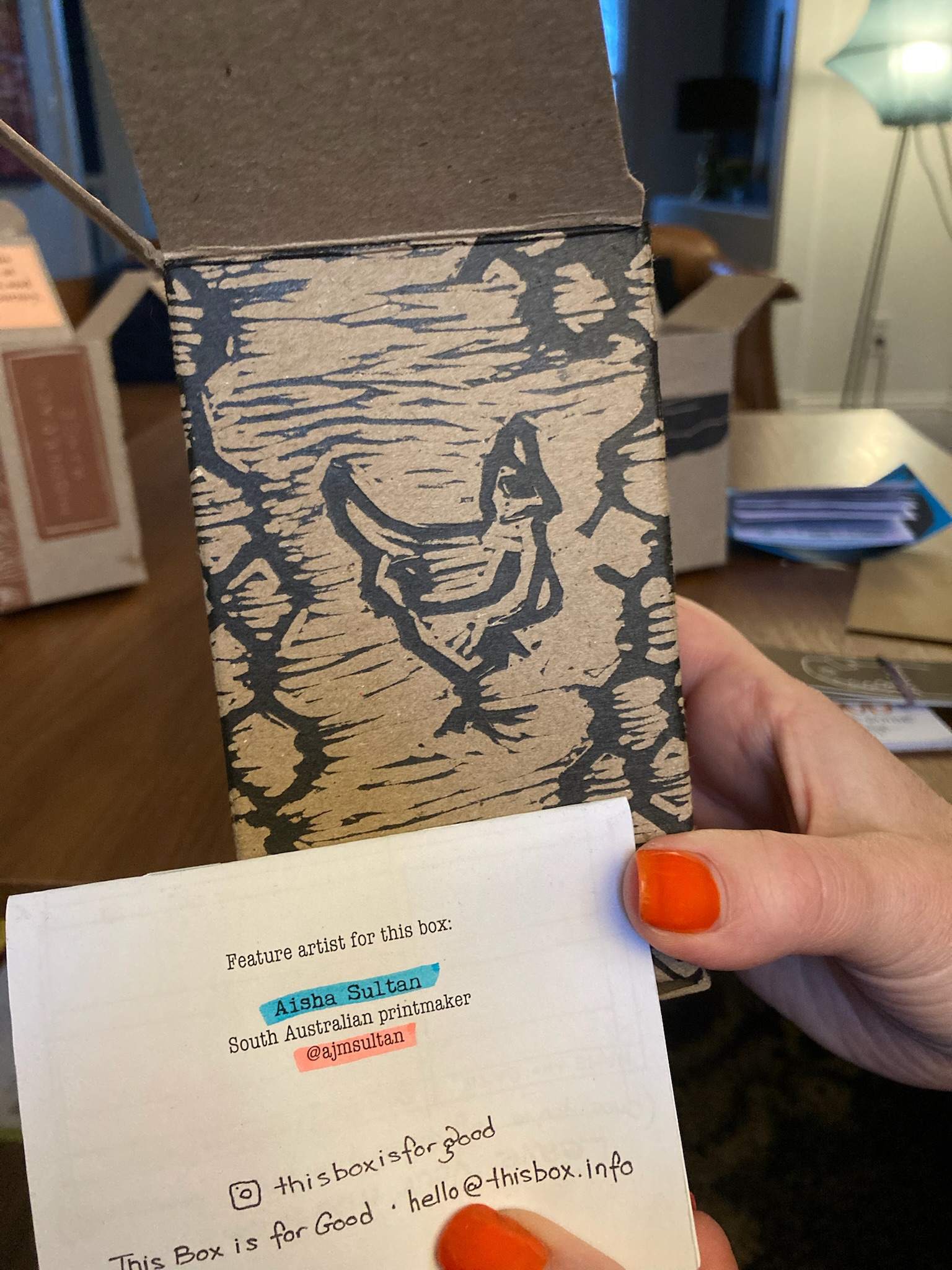 Edition Details Artist Aisha Sultan Press Union St Printmakers Release Date Sunday, December 15, 2024 Location 🇦🇺 Adelaide, Australia Where This Box Has Been 2 boxes with 3 registrations across 3 unique locations: Box Number Registrations Journey 1299 2 Kangaroo Island, Australia → Encounter Bay, Australia 1296 1 Kurralta Park, Australia